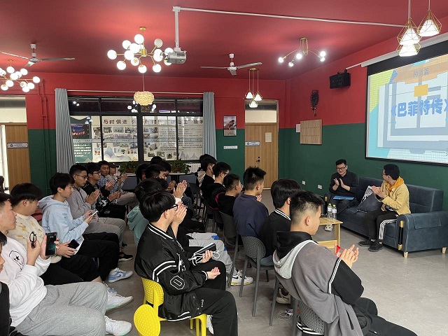 分享的感悟、生动的故事、鲜明的事例以及真切的启发赢得了热烈的掌声,不止是老师在阐明自己的理解,同学们也将阅读《巴菲特传》后的感悟与大家分享、与老师交流互动。张泽同学所说:“没有办法预测到20年后会发生什么,但却可以从宏观上去把握住未来。”这便是当代大学生的觉悟,对于时代的觉悟。在不知不觉,大咖阅读风气已然四处弥漫。