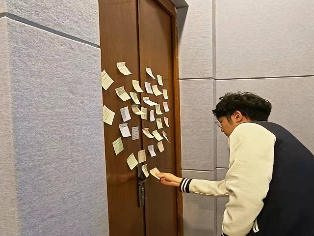 活动设置了“有奖问答”及“我想对你说”的互动环节。其中,第一环节“有奖问答”环节通过电脑随机抽取“天选之子”进行作答,刘老师还为答对题目的同学准备了“惊喜”热奶茶,同学们在故事中品味着温情的事迹,在奶茶中品尝着收获的喜悦。在第二环节“我想对你说”环节中,同学们每人领取了一张“心愿”便签纸,将想说的话在纸上一一“讲述”,雷锋曾在日记中写到“人的生命是无限的,可是为人民服务是无限的。我要把有限的生命投入到无限的为人民服务中去。”化文字为力量,有深度的话我们浅浅的说,有温度的字我们温暖的写。值得惊喜的是,活动结束之际,同学们自发性的将“心愿”便签纸拼成了一个温暖的爱心并许下学习雷锋精神的承诺。