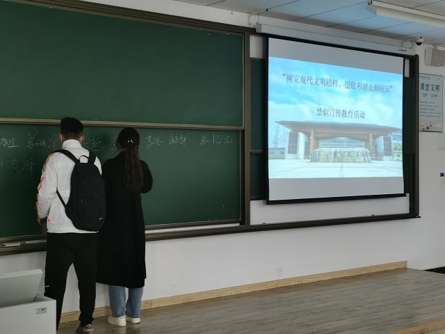 这次活动在推动校园精神文明建设发展的同时,倡导大学生的健康绿色生活方式,构建卫生和谐的校园。让同学们一起对吸烟说No,向健康招手,让青春活在清新的校园中。