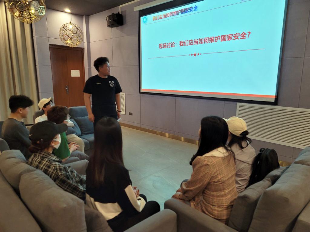 赵彤老师开展了以“国安才能国治,治安才能治国”为主题的班会,向同学们介绍了国家安全的相关知识。告诉同学们“面对国际各方面的局势风云变化,增强全民国家安全意识是就是增加个人对国家的忧患意识,是增强民族凝聚力和向心力的强大的精神力量,国家安全不仅仅是挂在天边的口号,更是我们每个人都要承担的责任。”宋宏越老师则带同学就如何维护国家安全展开讨论,同学们各抒己见,分享自己的看法。刘浩男老师和薛珊老师也就国家安全相关方面的知识展开讲解,通过国家安全教育短片给学生厚植爱国情怀,切实增强师生国家安全责任。
