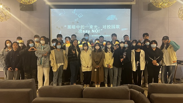 本次活动设置了“有奖问答”、“无剧本演出《校园欺凌》”、“嗨!同学你好!”、“观看校园欺凌视频”的四个互动环节。