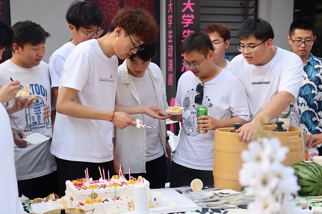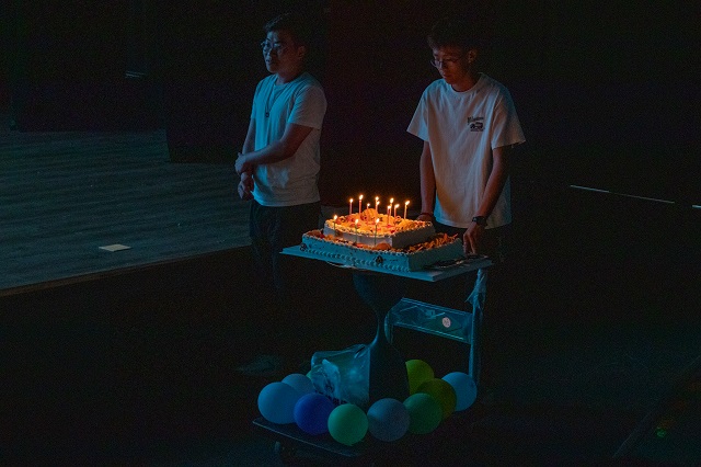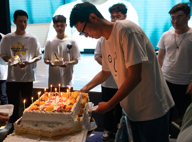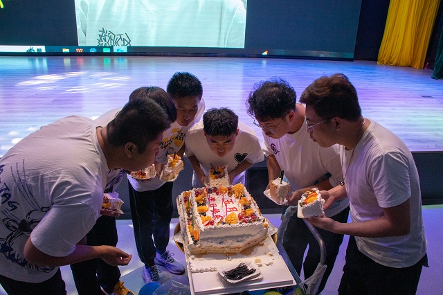 主持人孙增飞和田泽宇通过幽默的对话引出了彩蛋惊喜——学生会成员的五月份生日祝福,在剧场大屏幕上播放这智能工程学院学生会成员以及老师们给予的生日祝福视频,在会场老师们共同为他们送上生日蛋糕,智能工程学院的“寿星”们许下愿望吹蜡烛。在会场,所有学生会成员为他们欢唱生日歌,让他们在泰科,在智能过一个特别的生日,留下一段独特的回忆。