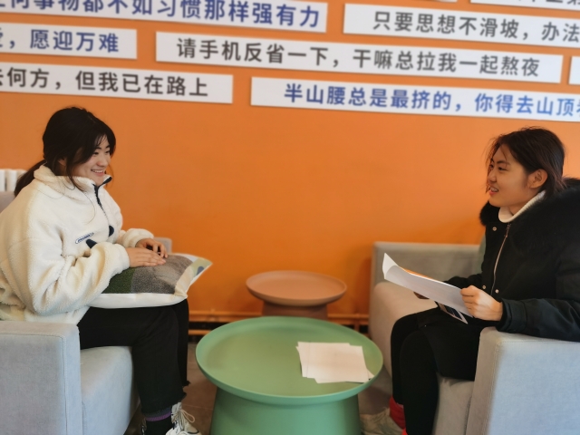 随后,张莹又针对学姐学习、工作提出问题,学姐也是一一进行了解答。采访过程中,姚瑞莹学姐多次提到:参与学校各种有意义的活动中我学习到了很多东西。与人交际的技巧,与人协同合作的能力,各个方面也都得到了很好的锻炼。在此期间我都没有想过,进入大学后自己的成长能那么大。