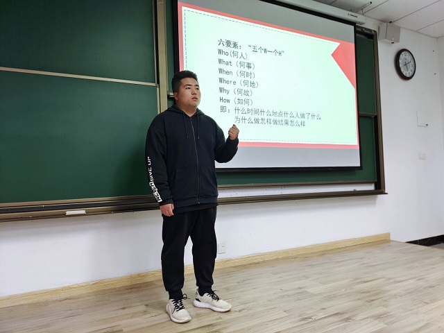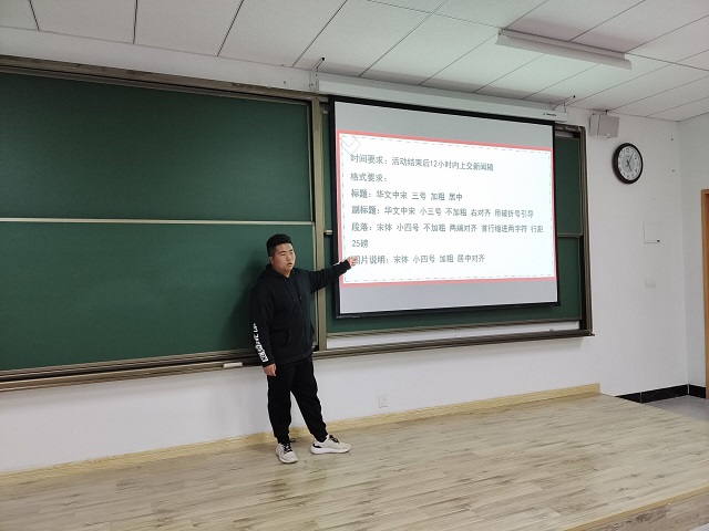 随后开始对新闻稿撰写进行培训,吕家成向同学们讲解了新闻稿的标准和要求,并进行了新闻稿写作实际操作教学,根据案例具体答疑。培训过程中,宣传委员积极提问,工作人员现场进行解答,为同学们答疑解惑。