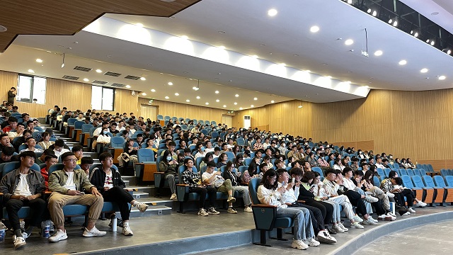 纳新会开始前,三位辅导员老师,即朱文静老师、范月月老师和刘倩倩老师,与学生会组织部成员提前抵达布置现场、检查和调试PPT,充分保障了纳新会机动功能。纳新会即将拉开序幕,2021级新生已早早落座,静静等待开场。随后,朱文静老师的一句问好掀开了纳新会的幕布,现场瞬间掌声四起、欢呼雷动——令人期待已久的“纳新宣讲会”开始了。