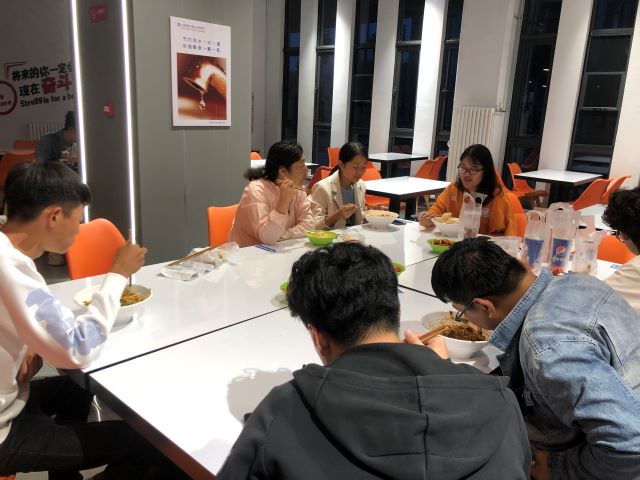 在餐桌上孙院长特地买食物为在座的同学加餐,院长说,“身体是革命的本钱,无论什么时间,无论发生什么事,都要尽量吃饱、吃好。”面对孙院长的关心,同学们不再拘束,开始畅所欲言,现场师生其乐融融,氛围温馨。