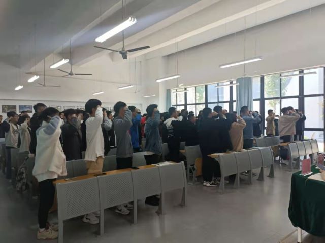 总结部署大会,在主持人郝宇鹏,有条不紊的主持中开展而来。老师们肯定的眼神,同学们积极的目光,挺拔的坐姿,都展示出大会的严谨有序。在会上,首先进行的是,共青团宣誓。宣誓词中写道的“服务同学,做强智能”既表达了初心,也表明了决心。在最后,宣誓人宣读名字时,更是让同学们内心汹涌澎湃。