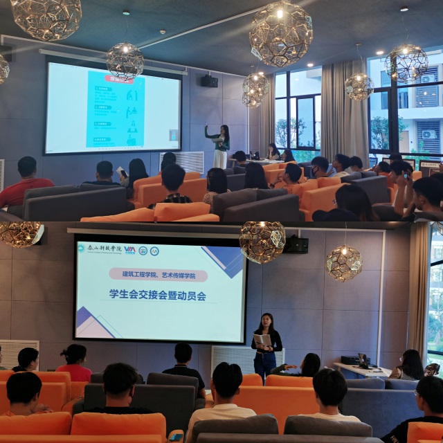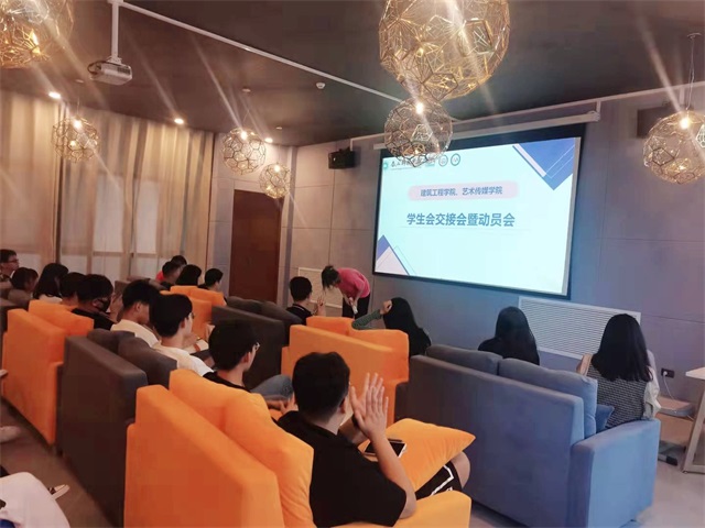 2021年9月8日建筑工程、艺术传媒学院在东岳书院119开展了两大主题会议,分别为学生会交接动员会和迎新工作部署会。本次会议针对学生会交接问题和迎新工作部署问题进行讨论,由学办主任马栋老师和三位辅导员老师主持,主席团的各位主席们补充,顺利开展了本次具有重要意义的会议。