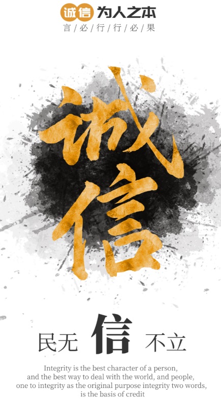 一、诚信公益广告设计大赛第1期·诚信文创 要求以“诚信”为主题,以简报、海报、DM单、实物等为形式进行创作,进行作品的收集与展示。