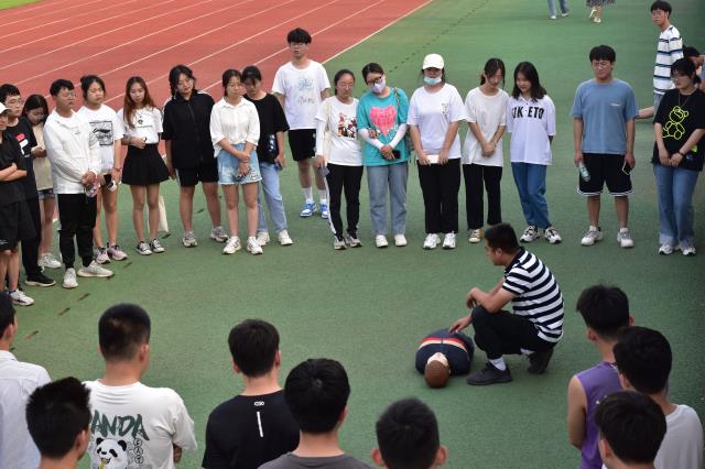 雨季和汛期来临,正是溺水事故频发时机。为了提高同学们安全防范意识,了解溺水安全的有关内容及急救措施。6月23日下午,大数据学院计算机科学与技术20-1班和大数据管理与应用20-1班在学校操场开展了“防溺水安全教育”活动,拓展训练部明旭教练为同学们讲解了遇到溺水事件的急救措施及相关培训。