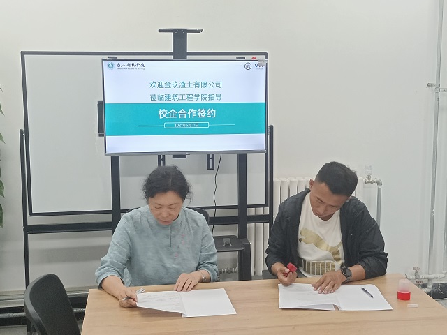 5月21日14:00,金玖渣土有限公司市政工程项目经理王伟来访建筑工程学院,并签署校企合作协议。建筑工程学院副院长孙淑贤、教学老师韩澎涛与会。