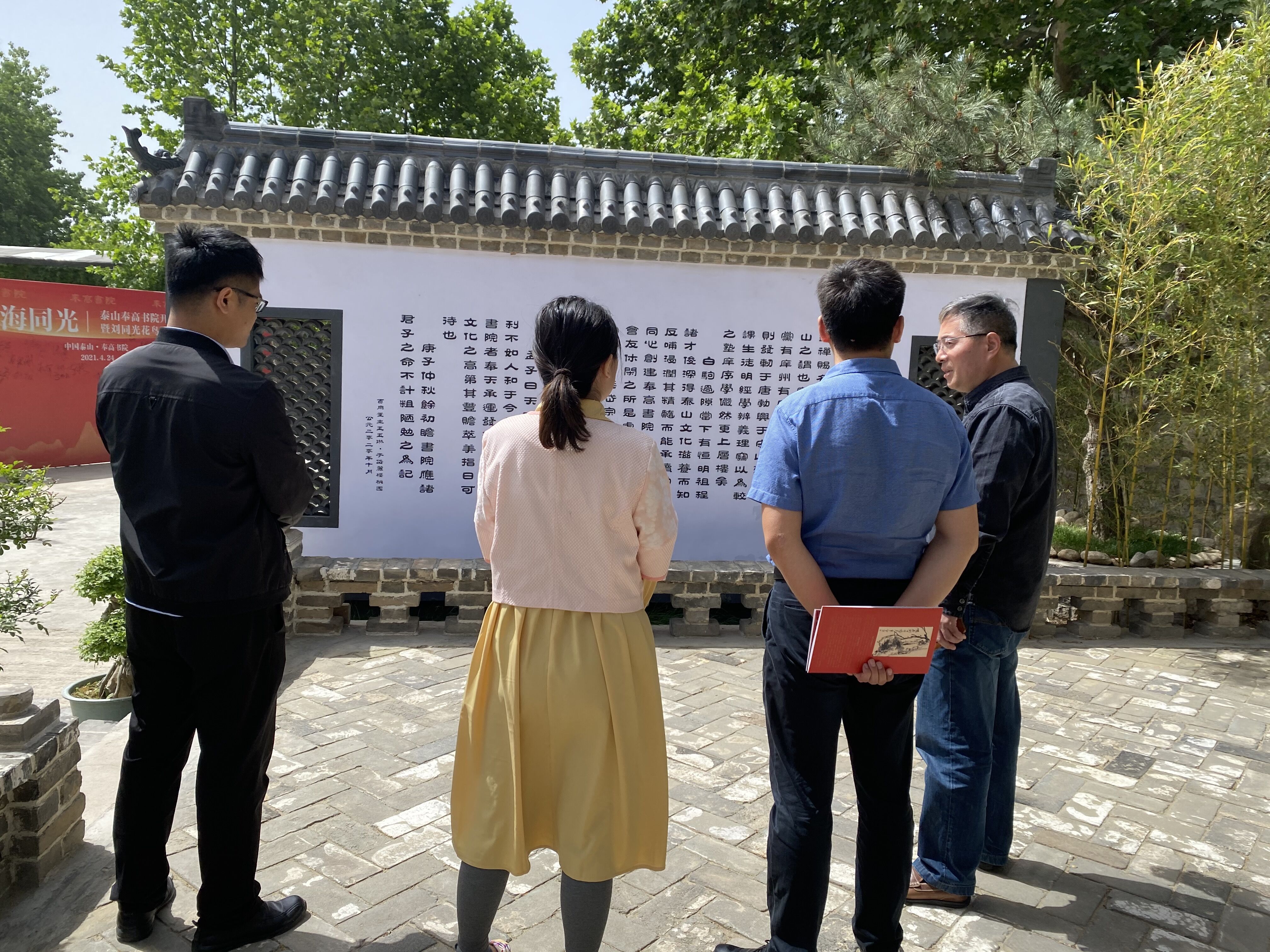 山东泛华文化发展集团董事长、泰山奉高书院院长王恒明及泰山奉高书院副院长任祖程、赵黎明陪同客人参观了奉高书院以及国家一级美术师刘同光教授花鸟画作品展,在参观时,任院长还讲解了刘教授作品的特点以及文化产业的发展。参观后,双方进行了密切交流。任院长介绍了泰山奉高书院基本情况,书院秉持传承、弘扬、纯粹、公益的守则,开展泰山文化、汉学文化、中华国粹的研讨、传承、教育、传播活动,同时开设奉高讲堂,为泰山文化研究学者、知名人士和传统文化爱好者提供学习和交流的场所,努力打造新型而开放的奉高书院模式。