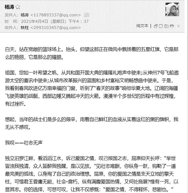 本次活动由班级团支书曲伟豪以及陈龙同学联合举办,旨在丰富学生的课余生活,提升同学们的写作能力,培养学生的民族精神,提高学生的爱国情感