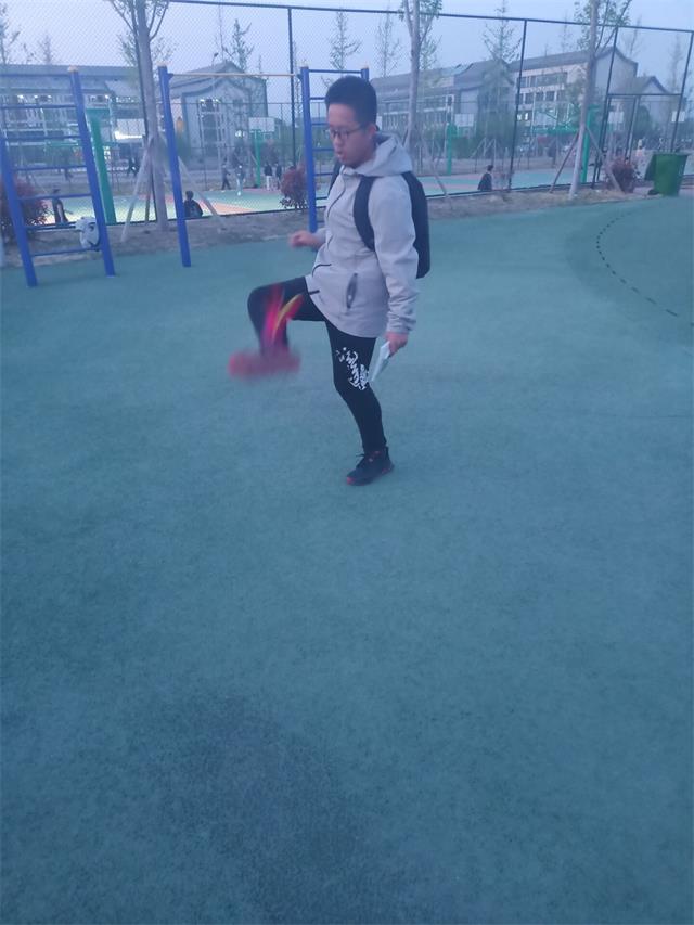比赛开始。比赛时间虽然只有短短的1分钟,但比赛过程却非常激烈。技术水平一般的,每次把毽子踢飞了都会迅速地捡起来重新踢起来,想着抓紧时间能多踢两下。技术娴熟的人,除了考虑不让毽子踢飞之外,还要考虑怎样缩短每次毽子飞行的时间,能用最短的时间踢出更多的次数。其中刘仲奇同学在比赛过程中异常地努力,身体表现出极强的平衡力和柔韧度。