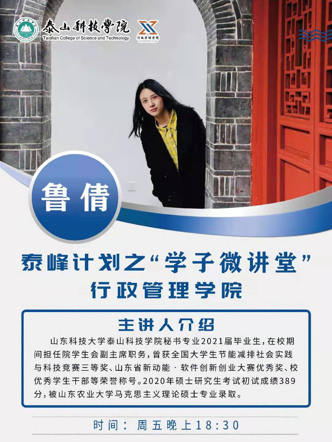 据悉,本次讲座主讲人为来自秘书专业2021届毕业生,现就读于山东农业大学马克思主义学院的鲁倩同学。