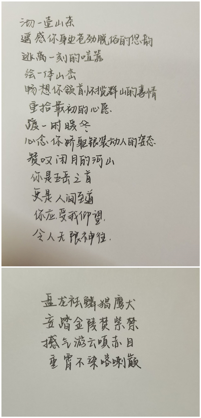 “灵山多秀色,空水共氤氲”。为培养同学们的写作能力,丰富同学们课余生活,大数据学院开展有笔青年第五期“时抒旧意 墨染山河”写作营活动,本次活动在九河书院102教室顺利开展,共有12人参加。活动在“无WiFi ”的环境中,同学们展现优美的文词,抒发对山河的热爱,字里行间里透露出对祖国山河的憧憬。