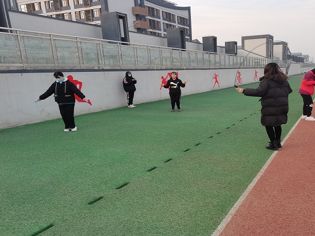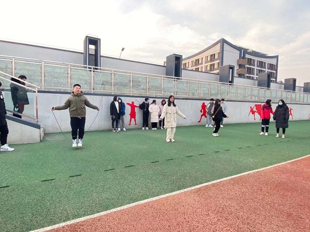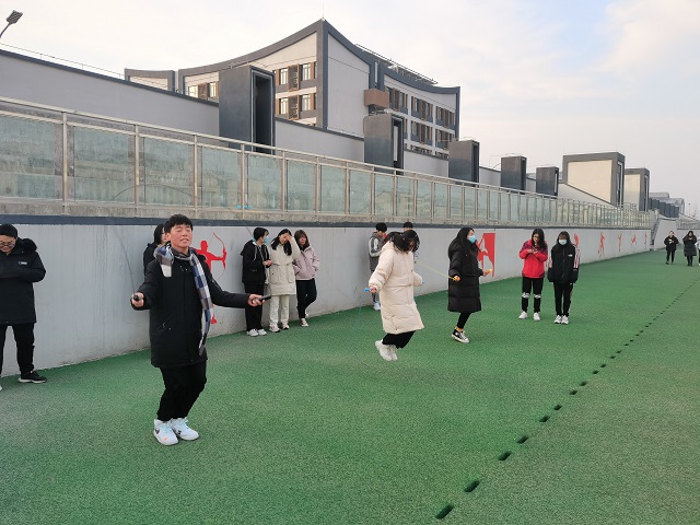 跳绳比赛能更好的营造和谐校园的良好氛围,展现大学生的精神风貌和积极进取的拼搏精神,培养学生团队协作意识。离比赛还有二十分钟的时候,参赛成员都已经陆续到达操场,严寒的天气并没有阻挡同学们的热情,每个人都跃跃欲试,他们紧张的做着赛前准备,体现出必胜的决心。