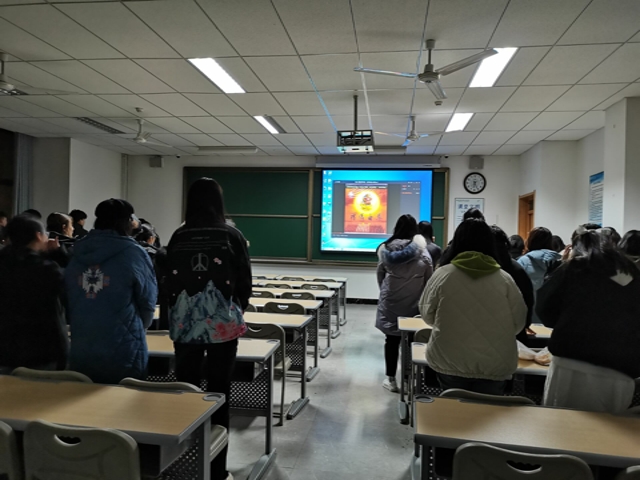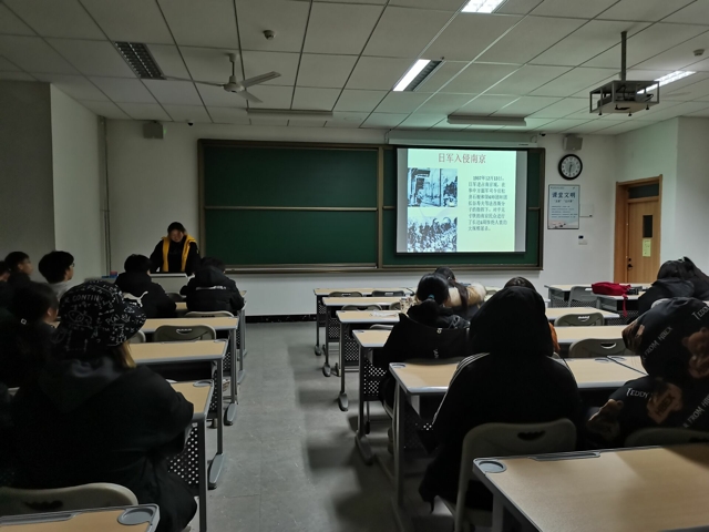 首先,班长司铭洋带领大家奏唱国歌,激发了同学们的责任感,然后由孙昱同学播放并讲解了南京大屠杀PPT,孙昱同学讲的激情澎湃,讲台下的同学很认真在听,大家都很严肃,看完南京大屠杀的相关的材料,大家的心情非常沉重。每一个数字背后都是一条鲜活的生命,零星的灰白影像让大家多次眼眶发酸。