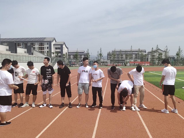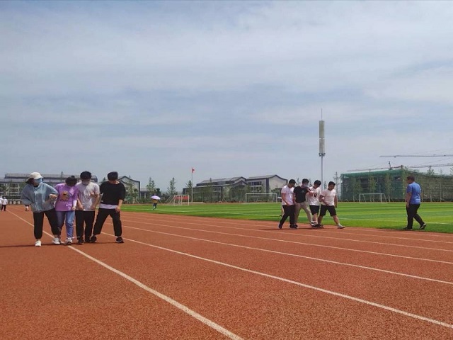 为促进班级交流,增进同学友谊,2020年9月27日上午10时,由电气自动化2019级1班团支部组织的“四人五足”团队竞速比赛在学校操场举行。