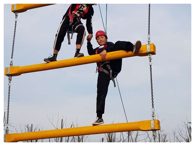 女儿有些恐高,她参加勇攀天梯这个项目是我万万没想到的。那天下班之后收到了她在比赛时的照片,她激动地跟我说她所在团队获得了勇攀天梯的单项第一名,高兴得不得了。我问她:“你不是恐高吗,为什么还敢爬这么高的梯子?”她跟我说,本来她是不敢上的,但是原本要上的那个队员突然身体不舒服,只能临时换人。看着周围几个同学为难的目光,她鼓起勇气,跟老师说:“我来吧!”本以为是重在参与,没想到竟拿了冠军。这个比赛不仅让女儿克服了恐高的问题,也锻炼了她的胆量,我相信她再遇到类似的事情也不会畏畏缩缩,一定冲在前面。