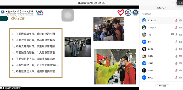 在会议中,李天文老师首先为学生从七个方面讲解了返校安全注意事项,并为返校途中需要重视的问题做了详细讲解。李天文老师强调,返校学生要积极配合学校完成信息的准确无误上报,谨慎选择交通工具,避免人员密集,做好个人防护。