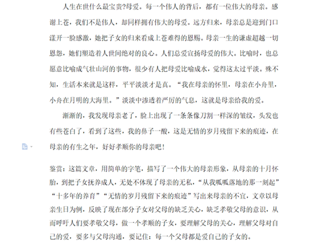 电气工程及其自动化二班管奥博,以一篇荷叶母亲的文章进行赏析,文章以莲花为主要线索,暗示人物的心情与周围环境,文章内容精彩,更好的展现母爱的主题。