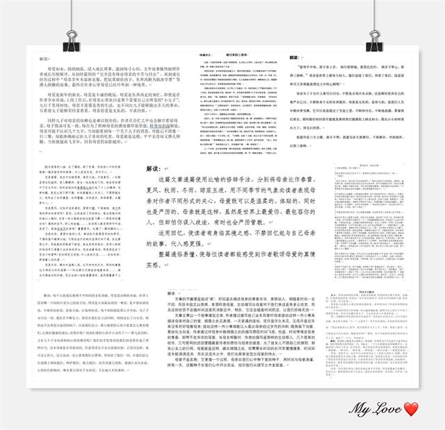 本期活动以“母爱”为主题,同学们通过各种写作网站或软件,寻找一篇值得收藏的文章并进行鉴赏,每位同学用自己对文章的审美与欣赏,找出每篇文章的写作特色,并进行积累。本次活动,共29名同学报名参加,由宣传部全体成员及指导老师进行评选。