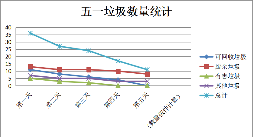 五天之后,通过绘制数据折线图,更加清晰直观地看到垃圾分类的成果,侧面反映出控制生活垃圾产生的意识在同学们心中逐渐加深。