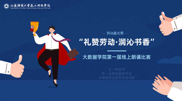 为帮助学生树立正确的劳动信念和价值观,弘扬中华民族伟大精神,展示学生良好的精神风貌,增强学生热爱生活、乐于劳动、勇于创造的思想情感,于4月17日-22日大数据学院团总支·学生会特举办“礼赞劳动·润沁书香”线上朗诵比赛,尽情朗诵,共诉劳动情怀。