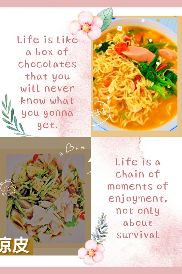 “烹饪是膳食的艺术,讲得通俗一点就是做菜、烧菜家常菜谱。虽然在我们每天的生活中都在做菜、烧菜,但是做菜也是要讲学问的。每个不同的阶段,我们都应该用心去发现生活中的一些美好所在,或许我这样的想法有点太简单!可生活中大大小小的烦恼都是因为我们自己的一种心情所出现的!做菜有时并不是那么的色香味俱全,但是怀着一种愉快的心情认真的做出来的食物是比它本事的味道更让人有胃口去尝试,而我做的这碗炸酱面都是满满的好心情。”——刘小溆