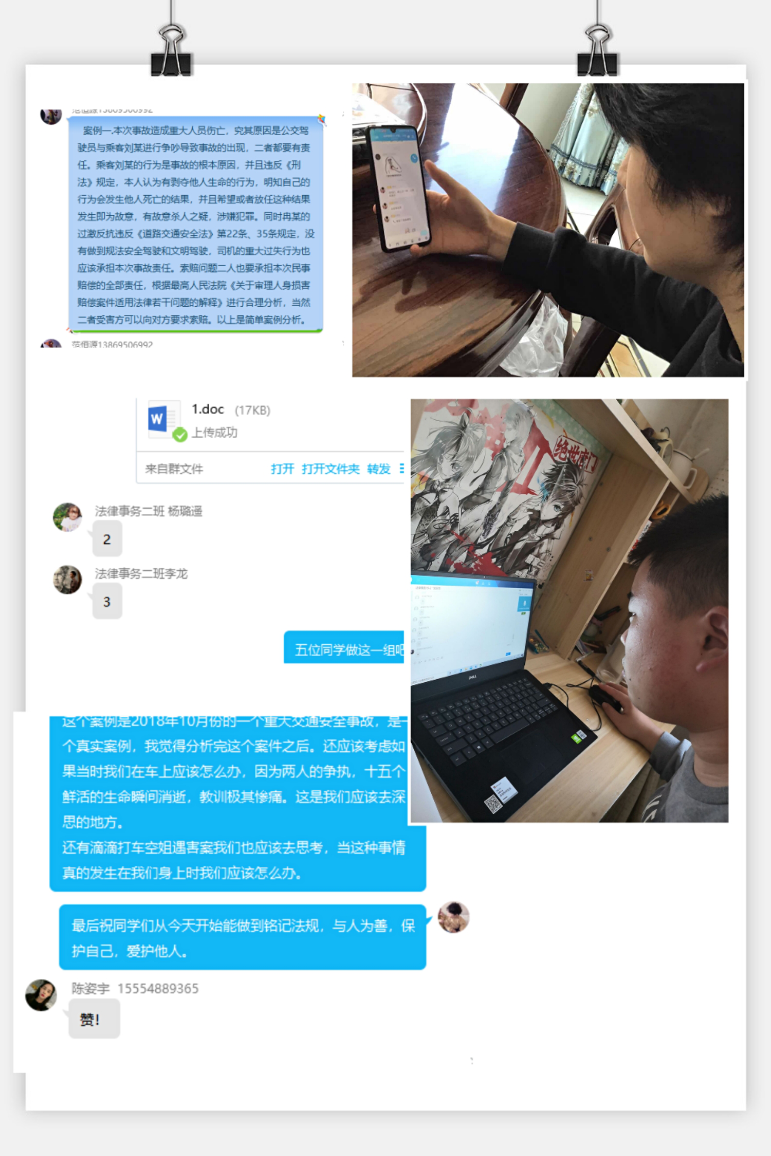 反思过往,改善未来。借此机会,同学们讲述了自己曾经做过的不安全的交通行为并进行了反思。在活动进行时辅导员张海亭老师在年级群中宣传此次活动,法学同学得知后也入群观摩,参加讨论,使活动更具有影响力。活动中同学们积极的对交通安全知识进行了回答,尽管答案时常会有错误,但是丝毫没有影响同学们继续答题的兴趣。