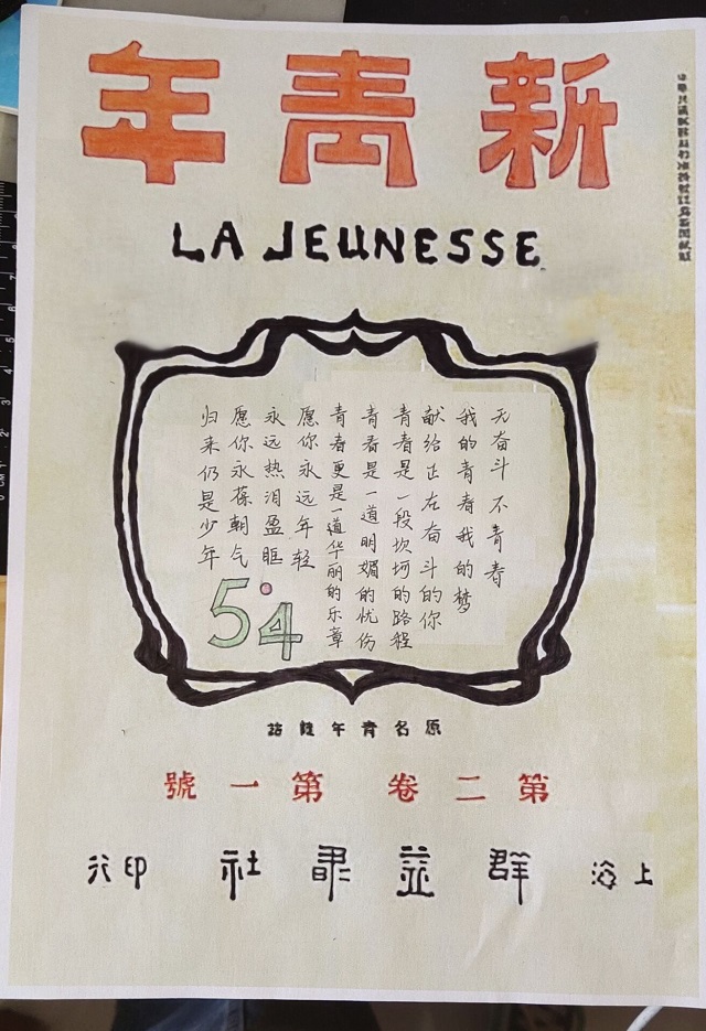 一想到五四青年节便想到当时1919年时的陈独秀先生,以及陈独秀先生所写的《新青年》杂志。陈独秀先生的思想在五四时期代表了先进文化的前进方向。现在作为青少年的我们更要以当时《新青年》为榜样,弘扬正能量,弘扬新思想,为中国的未来发现都奉献一份力量。