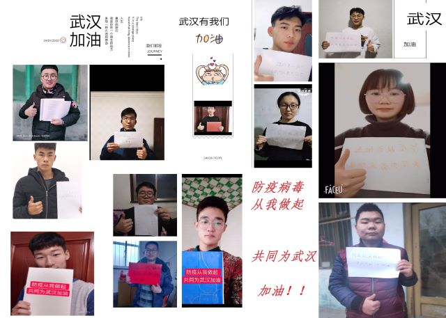 大年三十,智能工程学院机械各班的同学们也没有忘记自己所承担的社会责任,自发组织“防疫从我做起,共同为武汉加油”的活动,通过社交媒体的传播,提高大众对疫情的认识,在农历鼠年来临之际,共同为武汉加油,声援同胞,携手迎接新的美好的一年,愿民族腾飞,中国安泰,武汉平安。