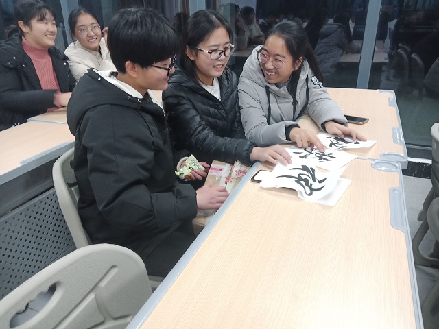 图片中显示的是三位参赛者在比赛结束之后,我们给获胜者送上的一份精美的礼品。礼品是运用同学们日常剩余的快递盒来包装做成的一份神秘礼物,三位同学在一众快递盒中随机选择的几样,即充满了趣味性又不失礼。
