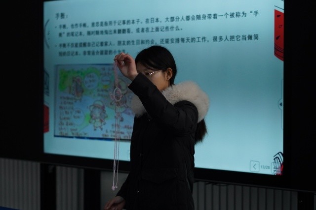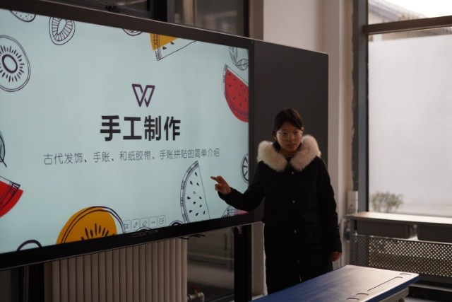 主讲人、“手艺人”李翠薇同学向同学们介绍了古代发饰种类及制作方式、花钿绘画方法及技巧,展示了手账拼贴的成品及制作方法,提高了学生对手工制作的兴趣。