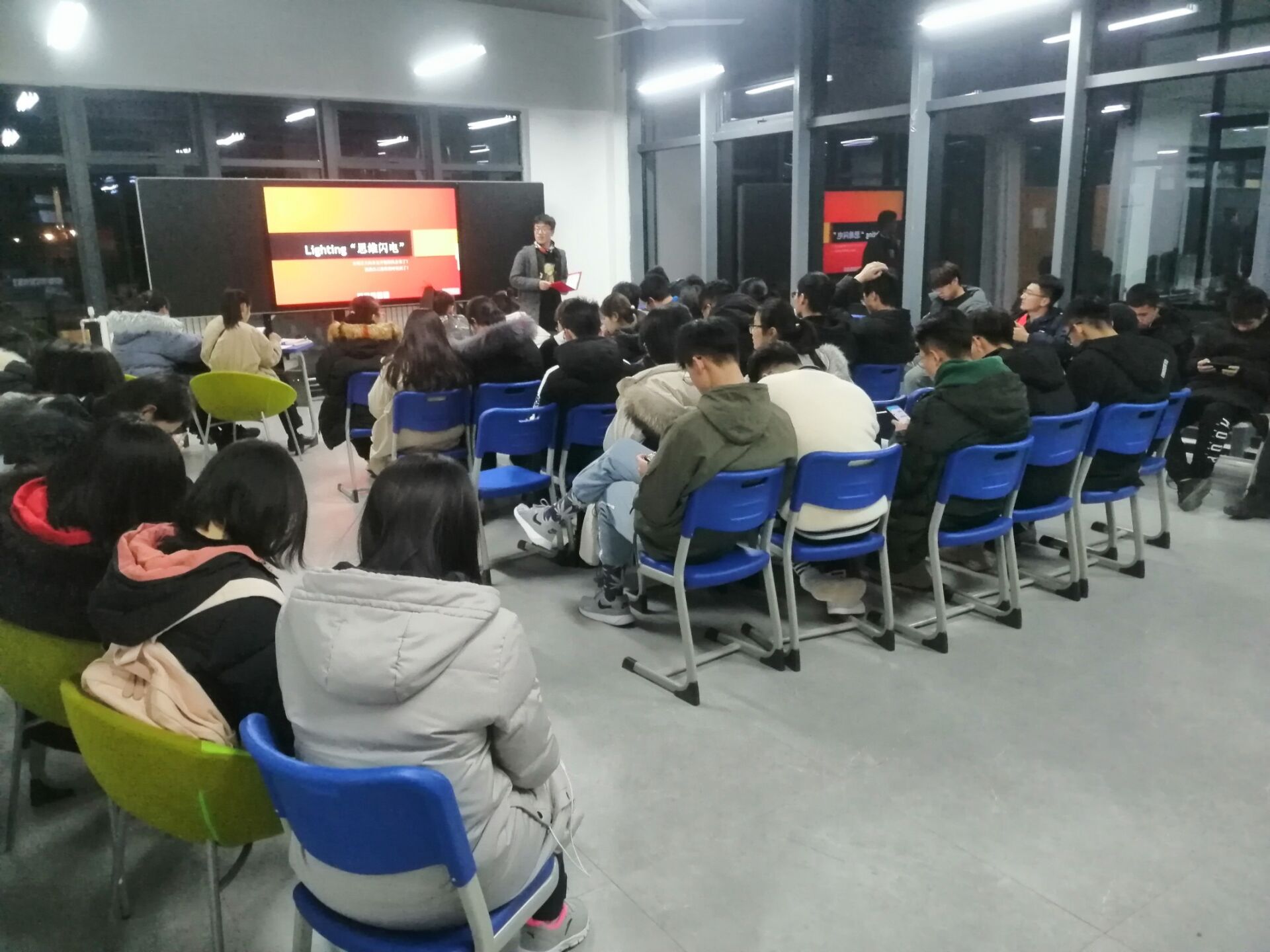 为增添完满娱乐氛围,在期末到来之际,调节学生们的课后生活。电子商务班与国际经济与贸易班联合举办Lighting“思维闪电”,活动在11月15日7点在五汶书院202举行 。本次活动通过“正话反说”“头脑风暴”等小游戏,发散同学们的思维,测验同学们临场应变能力,为同学们提供展现自己的平台,在轻松愉快的氛围中,为同学们的生活添点不一样的颜色。