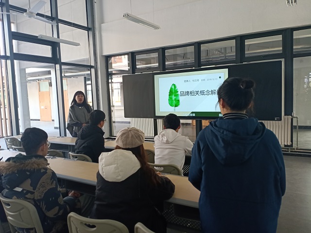 培训伊始,杜老师为大家阐述了品牌的概念、构成元素及与名牌的区别。为了使同学们更好的认识品牌,杜老师从具体实例入手分析,让同学们对品牌的有了新的认知。