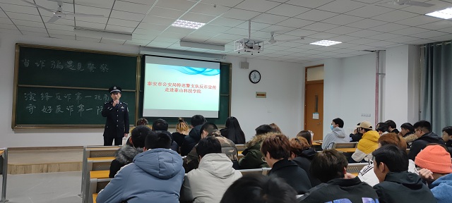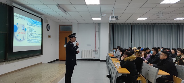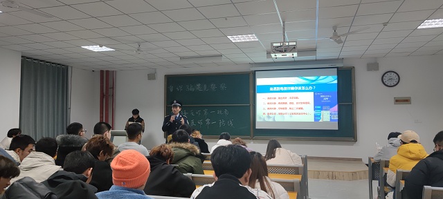 近几年来,电信诈骗事件在大学校园频频出现,为增强学生法律意识,树立法治理念,有效防范电信诈骗,保护个人财产安全,12月12日晚7时,大数据学院邀请泰安市公安局特巡警支队的王光盈警官在三教106室为2021级新生开展了以“树立法治理念,实现人生价值”为主题的安全教育课。