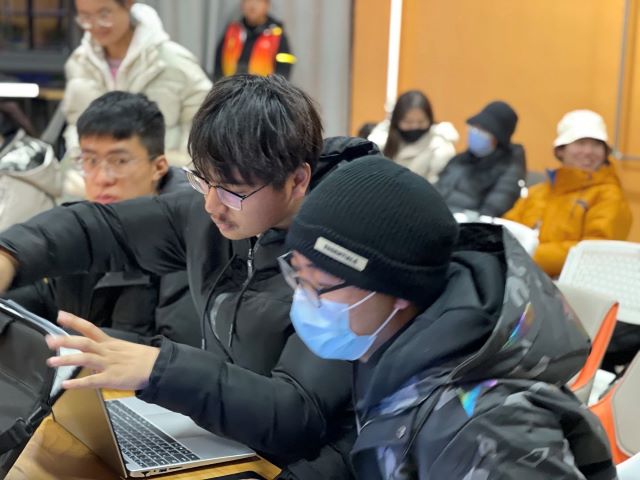 实操练习中宣传干事们互帮互助,提出实操中出现的疑问困惑,由部长张莹、副部长刘冬晨解疑答惑,培训现场如火如荼,形成了别样的风景。