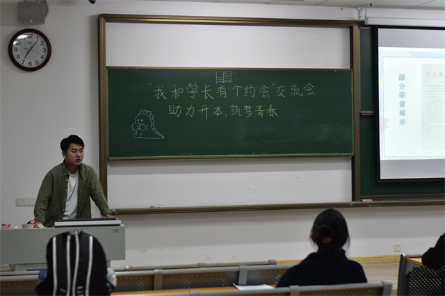随着当今社会竞争的日益激烈,大学生就业问题越来越严峻。为了帮助同学们了解更多专升本信息,做好未来的学习规划,大数据学院团总支·学生会组织部10月16日晚7:00在教学楼216举办了学长计划第7期“我与学长有个约会”专题讲座,此次讲座邀请到了计算机科学与技术2020级10班国家奖学金获得者赵钦和同学们进行经验交流。