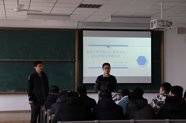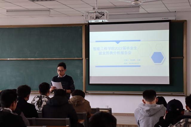 2022年3月2日上午,智能工程学院就创工作领导小组组长张涛然和领导小组副组长马栋围绕着本年度就业形势,各地市针对毕业生相关政策以及毕业生就业方面的问题开展了智能工程学院2022届毕业生就业形势分析报告会。