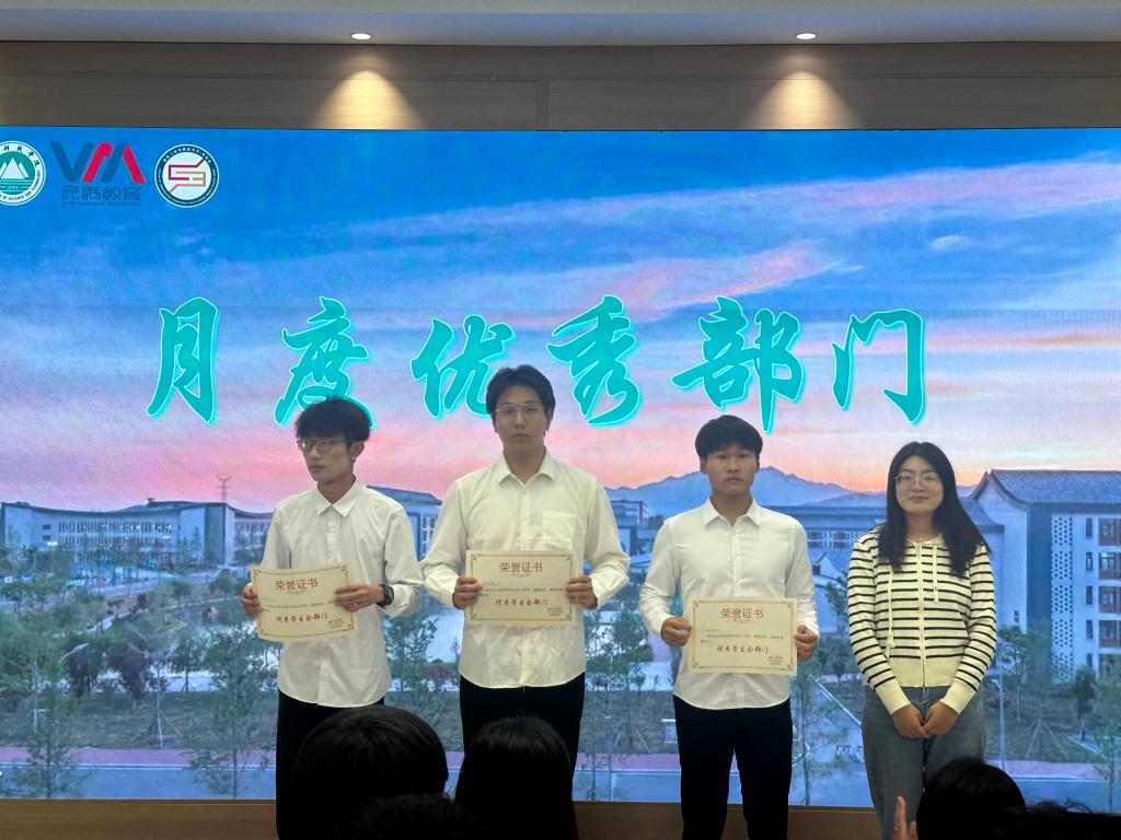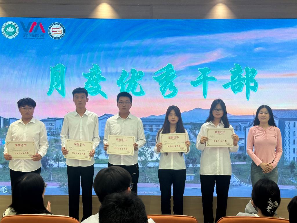 紧接着,大会公布了月度优秀干部、优秀部门名单。在激昂的乐曲声中,获奖者依次上台,接受杨金宝老师和王潇老师的颁奖。荣誉的颁发不仅是对过去的肯定,更是对未来的激励。这些优秀的学生会成员和部门,用实际行动诠释了学生会的宗旨和精神,赢得了全体与会人员的最热烈掌声和最真挚祝贺。