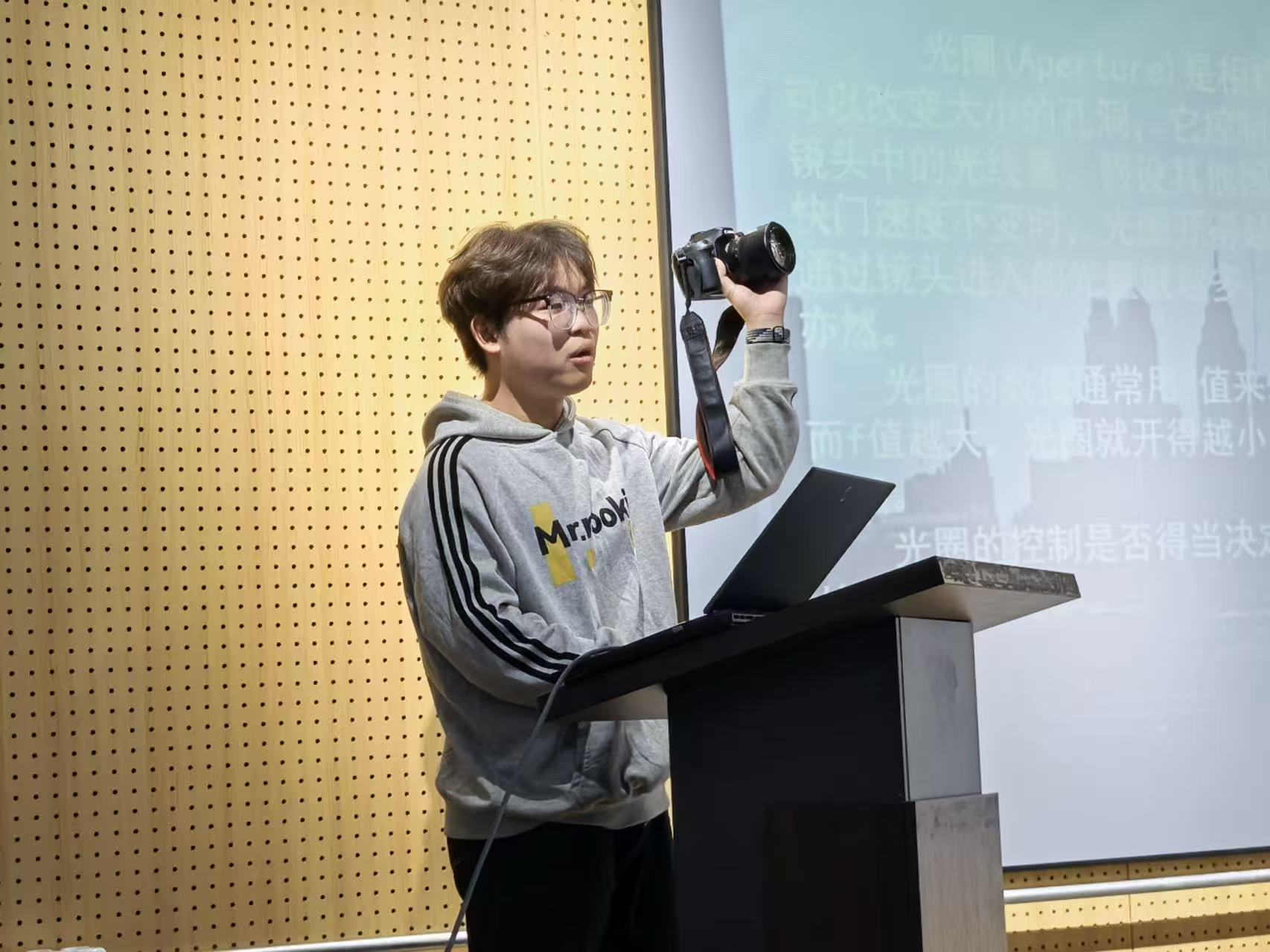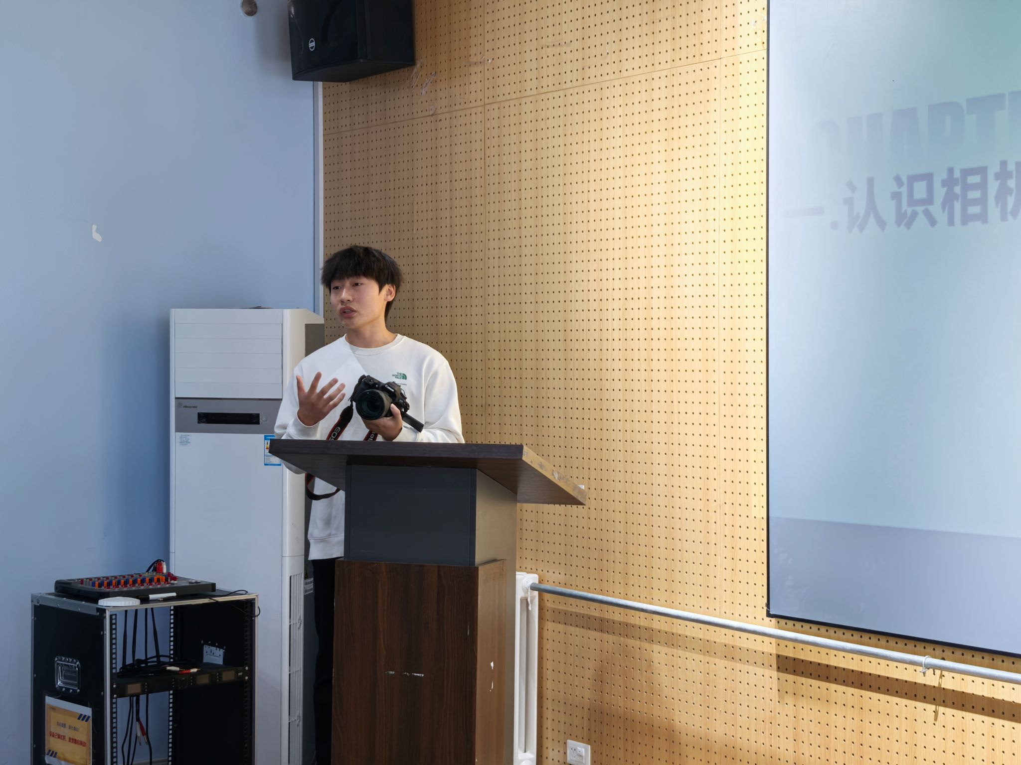 下午2点,摄影培训会在主持人热情洋溢的开场白中正式拉开帷幕。他向在场同学介绍了本次活动的背景、目的与流程,并对各位同学们的到来表示热烈欢迎。现场座无虚席,同学们手持笔记本,眼神专注,期待着一场精彩的思想碰撞。