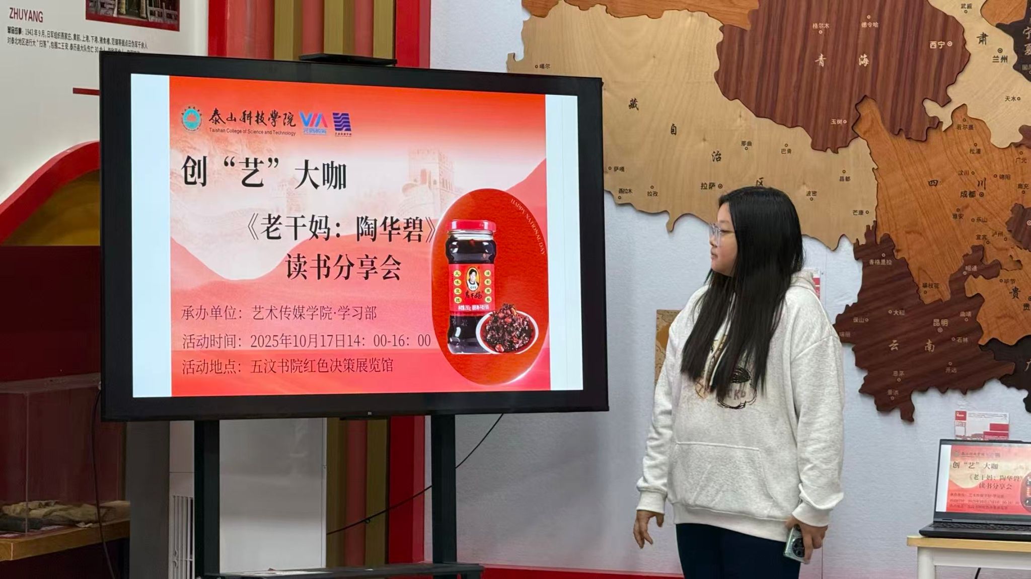 为深入探讨老干妈创始人陶华碧的创业历程、经营智慧以及其背后所蕴含的坚韧与匠心精神,吸引众多同学们及对商业文化感兴趣的读者参与。10月17日,一场以《老干妈:陶华碧》为主题的读书分享会在五汶书院红色决策展览馆热烈的氛围中拉开帷幕。