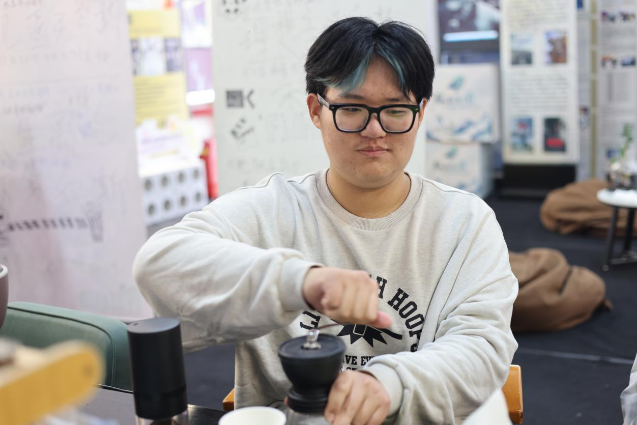 理论学习告一段落后,活动迎来了高潮迭起的亲手实践环节。汶阳113瞬间变身为一个生机勃勃的小型咖啡工坊,研磨声、蒸汽声、惊叹声与欢笑声交织成一首动听的劳动交响曲。