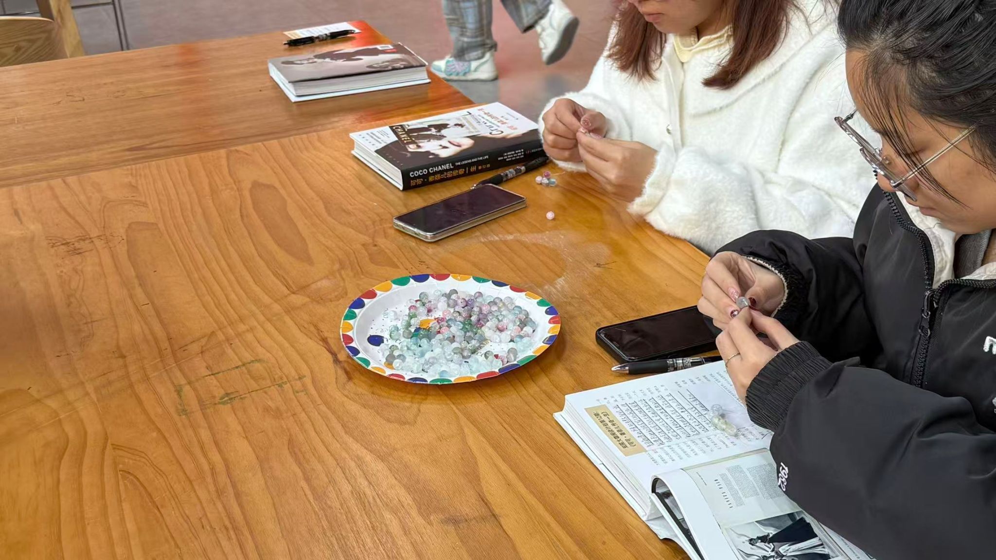 活动进入高潮阶段,每组参与者收到了包含吊坠、彩色珠子、链条等不同材质的手链配件,每种配件被赋予特殊的“决策元素”:吊坠象征人生道路上的核心目标,彩色珠子代表决策过程中可能面临的潜在风险,链条寓意实现目标的执行路径。参与者围绕近期面临的决策困境,如“是否加入社团提升综合能力”“如何平衡学业与课外活动时间”等,精心挑选配件、串制专属手链,在创作过程中与组员深入交流决策思路,梳理内心想法。随后,3-5名参与者上台分享自己的手链设计理念,将抽象的决策思考转化为具象的创意表达,让现场观众感受到决策背后的独特逻辑与个人追求。