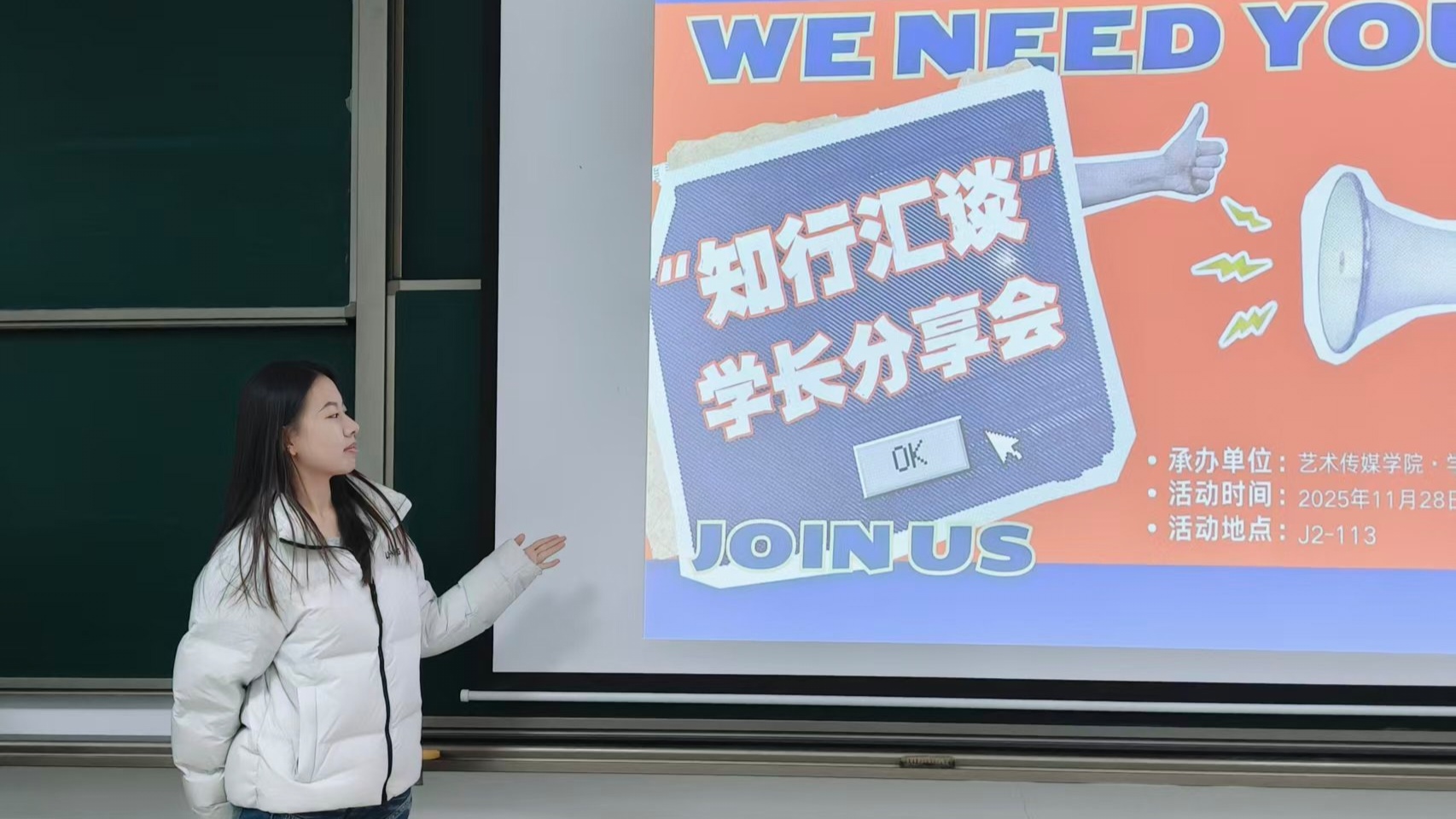 以经验为帆,以成长为向:艺术传媒学院学长计划第40期“知行汇谈”学长分享会活动于11月28日在二教113教室圆满举办。为搭建校园内经验传递与成长交流的桥梁,助力学弟学妹破解学业、实践与发展中的困惑,活动就此开展。本次分享会聚焦学生成长核心需求,让宝贵的成长经验转化为可借鉴、可落地的行动指南,为校园育人氛围注入新活力。