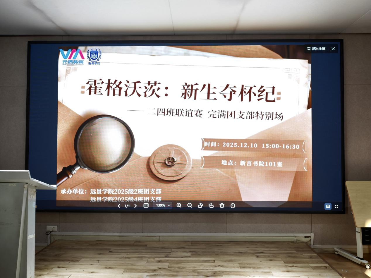 12月10日,寒冬暖阳下,远景学院2025级2班与4班的同学们,齐聚于新言101室,共同参加“霍格沃茨:新生夺杯纪”完满团支部活动,在沉浸式魔法冒险中打破班级壁垒,凝聚同窗情谊。