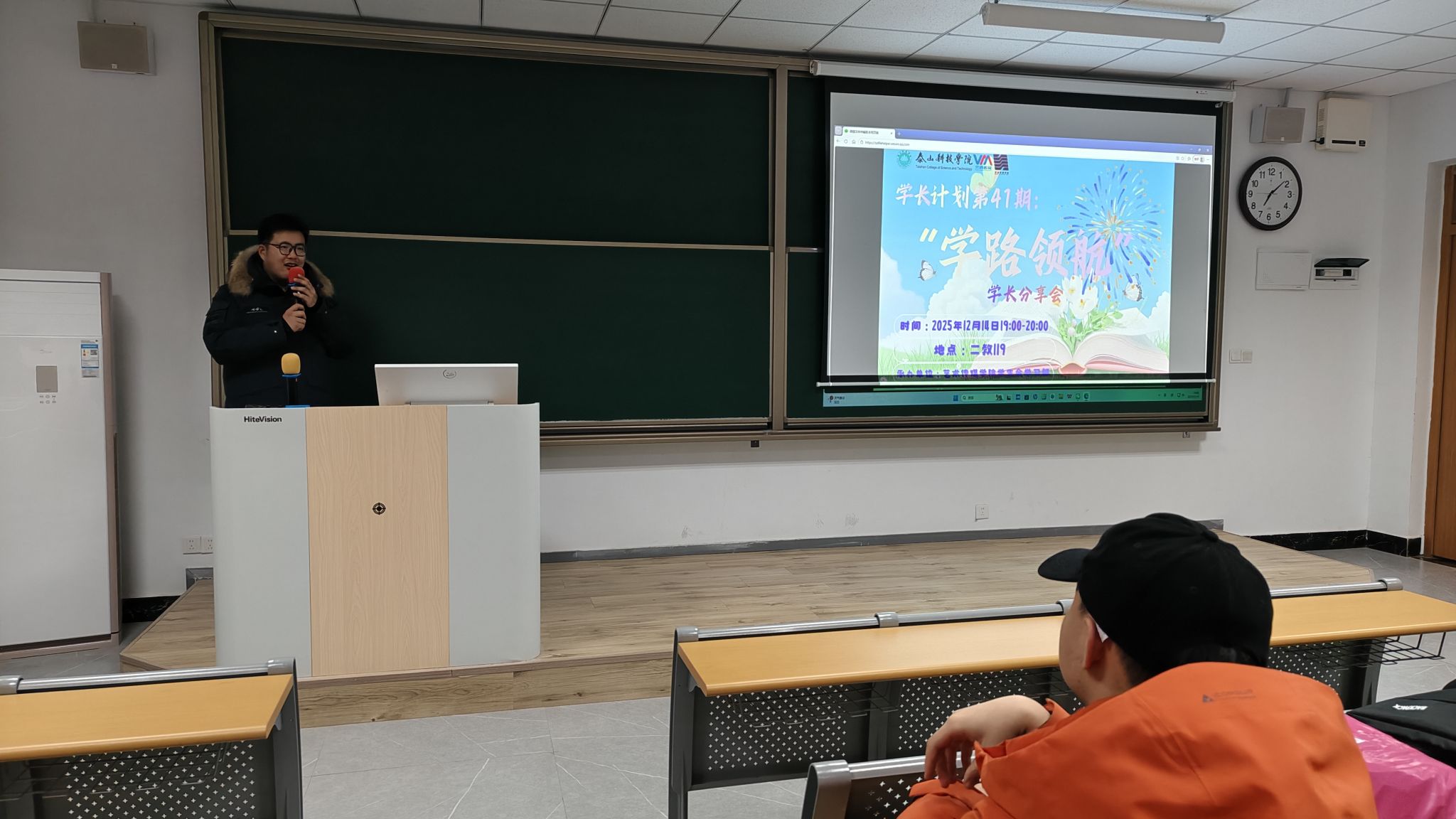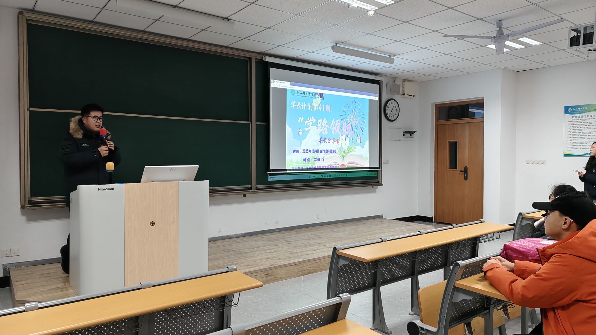 为缓解同学们学期中期的学业压力与焦虑情绪,通过学长亲身经历的励志分享激发学习动力,帮助大家明确后续努力方向,稳步推进学期目标达成,艺术传媒学生会·学习部于12月14日下午在j2-119举办了一场主题为“学路领航”的学长分享会活动。在这个暖意融融的午后,新老生齐聚一堂,李卓然学长以 “过来人” 的真诚视角,围绕中期学业关键节点展开干货分享,用真实经历传递奋进力量,为学弟学妹们的学期后半程学业之路保驾护航。