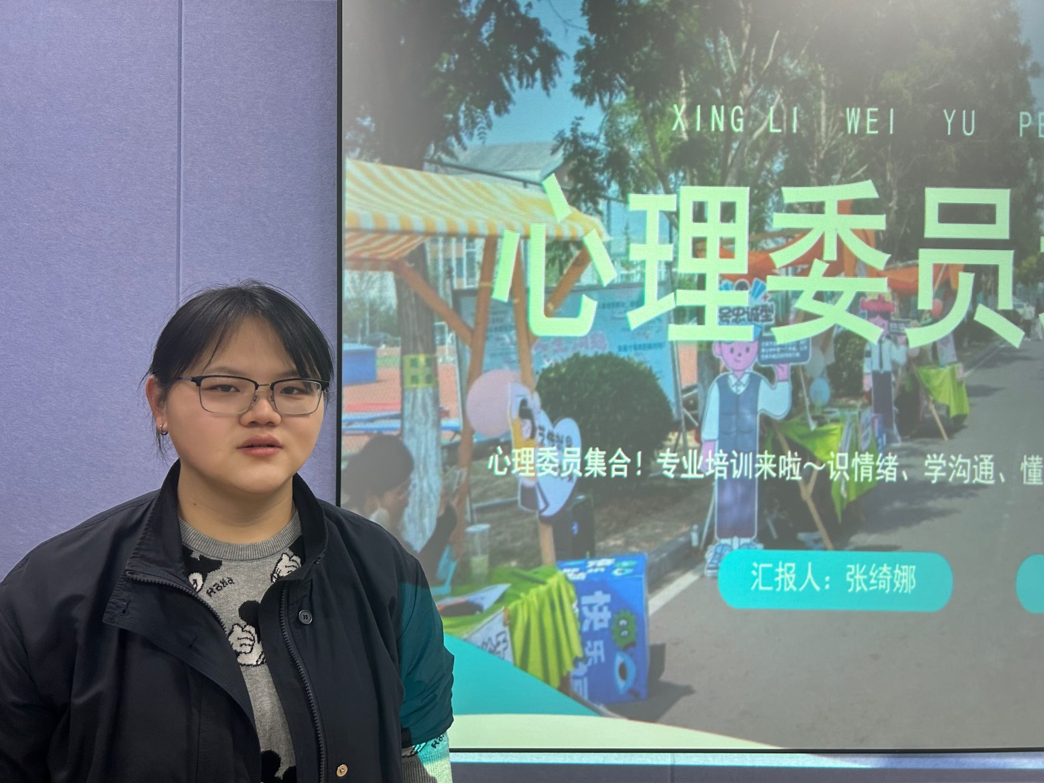 接下来,张绮娜同学详细解读了心理委员的工作职责,首先,心理委员是班级心理健康的“观察员”、“倾听者”和“引导者”,要定期观察同学们的心理状况与行为变化,与同学们展开沟通,做好日常心理工作;其次,积极组织心理活动开展,为同学们创造情绪疗愈的空间;最后,在同学有心理咨询需求时,及时寻求心理健康服务中心帮助。用真诚与耐心为同学们筑起一道心理“防护墙”,让每一位同学都能在健康的心理环境中成长。